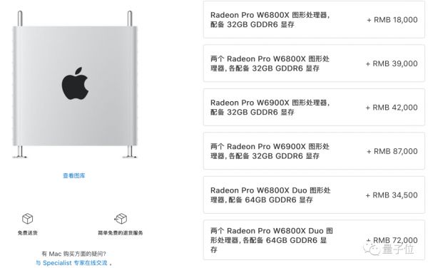 这次更新,也让Mac Pro从原先的最高显卡可选配两个Radeon Pro Vega II Duo MPX模块,更新为可以选配2个Radeon Pro W6800X Duo MPX模块。