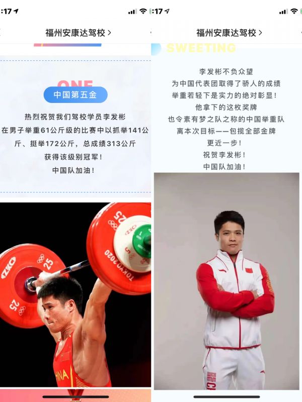 李发彬获得男子举重61公斤级冠军后,福建福州康达驾校就迅速发表一则微信推文称李发彬是驾校学员,同时还配以“康达冠军的选择,相信冠军的选择”,借奥运冠军的影响力来宣传自己。