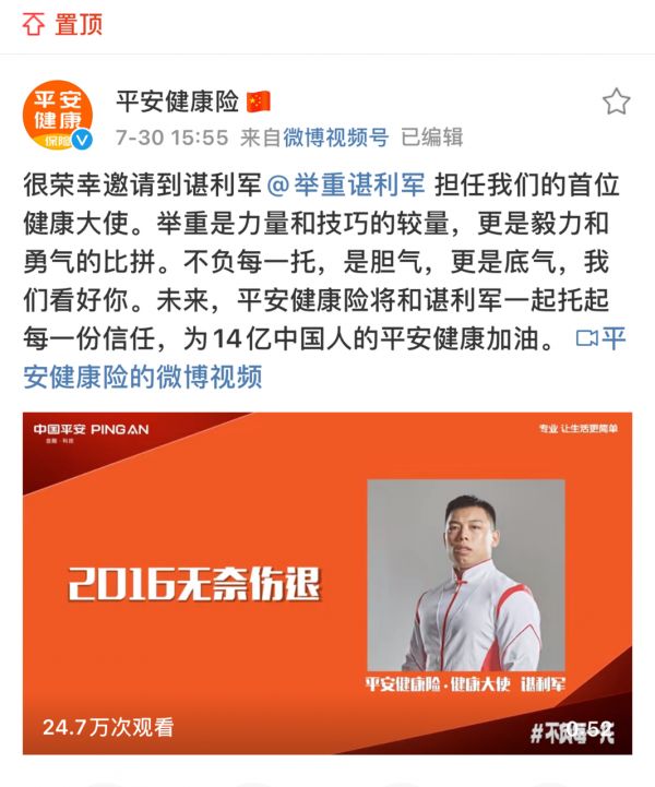 听到了群众声音的平安健康险,很快便宣布谌利军为首位健康大使,接下来#谌利军感谢网友为他找代言的话题登上微博热搜,不少网友直接在平安保险官微下留下好评:“很有眼光的品牌”、“因为这个,我居然关注了一个保险公司”等等。