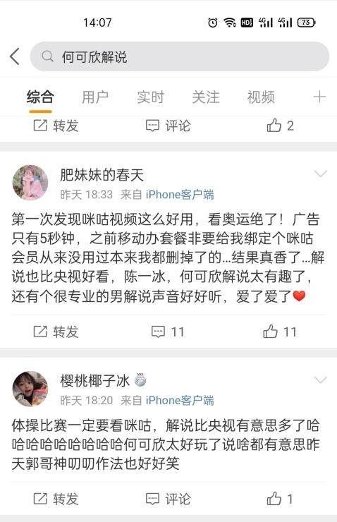 昔日的高低杠小公主化身毒舌解说员,“辣评”体操赛事,网友们纷纷表示听何可欣解说深刻感受到了什么是“王者不屑”。在微博#何可欣解说#词条下有不少人询问在哪里收听,得益于何可欣的出圈,咪咕视频吸引了大量用户。