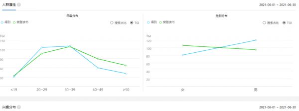 2)从年龄分布看,得到的用户更偏年轻化,而樊登读书的用户在40岁以后的年龄群体中仍然占一定的优势。