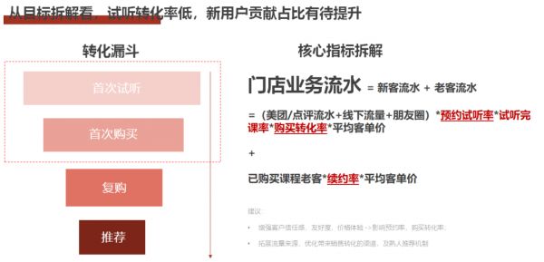 1)重点优化在美团/点评上店铺的图片、文字素材,及引导用户积极的做出评论,同时通过9.9专享试听课包,从线上获得更多的用户流量到店;