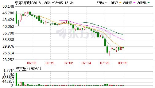 截至2021年8月5日,京东物流股价已经连续阴跌近两个月,目前股价仅为29.1港元/股,较40.36港元/股的发行价已经跌去约三成。不过不乏机构看好公司后市表现,例如中信证券首予京东物流“买入”评级,认为公司着眼于一体化供应链这一体量达到2万亿元的市场,京东物流因融合了物流和互联网的供应链平台型物流公司,发展可期。