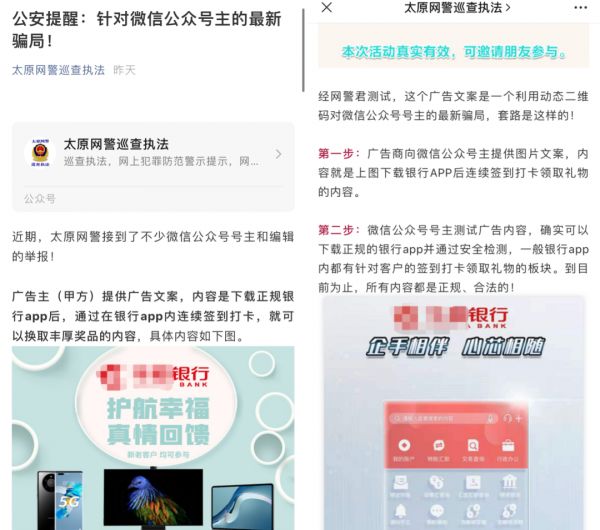 昨天,公众号“太原网警巡查执法”发文《公安提醒:针对微信公众号主的最新骗局!》,称太原网警近期接到了不少微信公众号号主和编辑的举报。