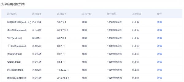与深度系统有“密切关系”的统信UOS桌面版系统同样也支持运行安卓应用,在统信的“安卓应用适配列表”中,显示已支持许多常见的安卓应用,如淘宝网、腾讯视频、豆瓣、钉钉和知乎等,安卓应用窗口可自由摆放,资讯类应用可以分屏显示、视频类应用支持全屏显示。