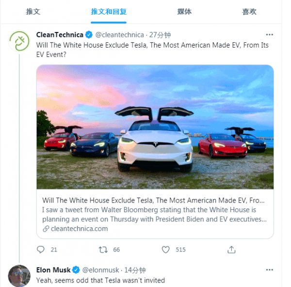 但这场活动却并未邀请新能源龙头特斯拉。连特斯拉CEO埃隆·马斯克都在推特上吐槽:“特斯拉没有被邀请参加似乎很奇怪。”