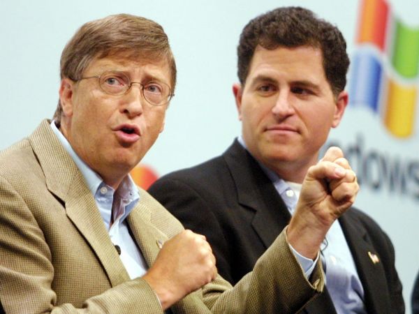 2001年10月份举行的Windows XP发布会上,盖茨与戴尔在一起