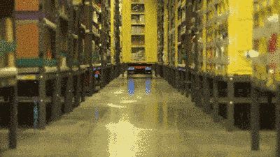 比如说,机器人已经介入了分拣工作。亚马逊的货品都存放在一个个货架上,最早需要员工从上面找到对应的产品,后来升级成了流水线作业。现在,分拣机器人可以根据订单信息将货架推到打包区域。