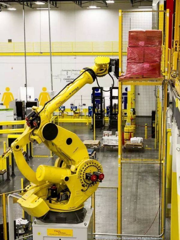 多年之前,亚马逊收购了一家名为 Kiva Systems 的机器人公司。现在,它开发的机械臂 Robo-Stow 早已代替了人类对货物进行捆扎,仅这一项机械臂技术,就为物流中心降低了 20% 的运营成本: