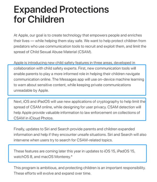 截图来源:苹果官网 https://www.apple.com/child-safety/