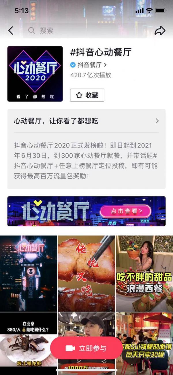 2020年3月,抖音上线“抖音团购”,提供到店核销和物流配送两种消费模式,用户可以通过抖音看视频、点餐、配送,这也是字节跳动第一次涉足美团的疆土;2020年9月,抖音推出“心动餐厅”,即美食榜单,抖音用户可实拍视频、发布时携带餐厅定位及活动话题,然后提名餐厅参与评选;与此同时,600家入围餐厅线下评分渠道也开启,还邀请美食创作者成为探店团进行点评,类似于“大众点评”。