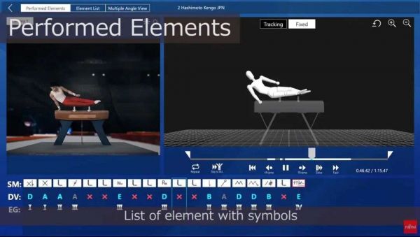 既是本土赞助商,同时也是老牌日本科技企业的富士通,则是在中日都有优势的体操赛场上引入了AI自动评分系统。一代代体操运动员们用各种难度颇高、花样丰富的动作,向观众和裁判们展示了人类的力量与智慧之美,这也带来如何尽可能保证评判足够公正的问题。