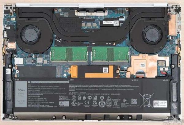 XPS 15 9510的内部散热结构,只用了两根热管来压制8核CPU+RTX3050Ti显卡