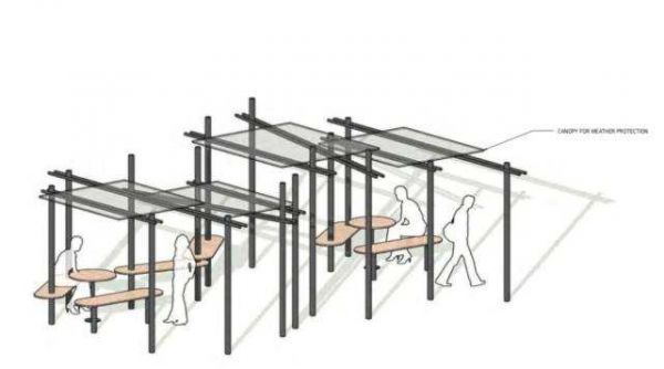 谷歌的园区规划包括为员工提供室外会议空间的天篷