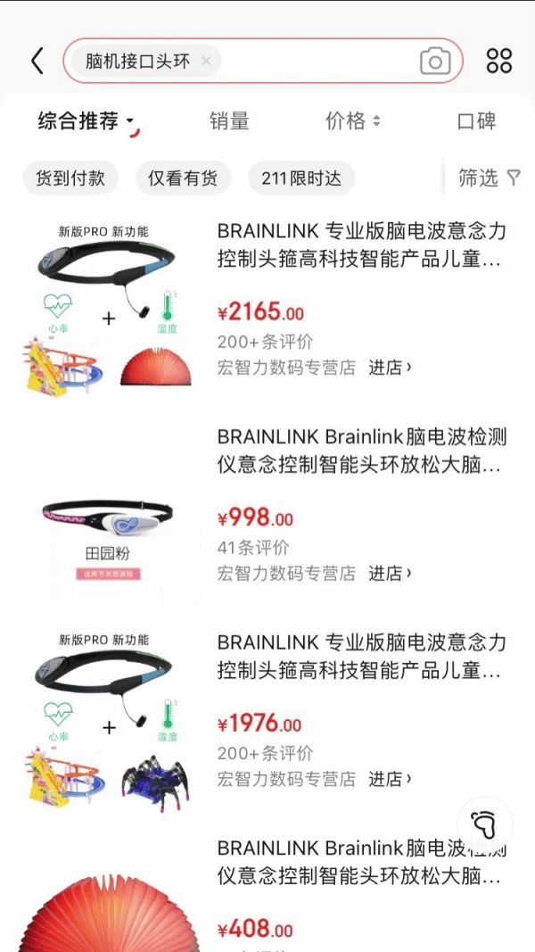当在某东上搜索“脑机接口”、“意念控制”这些词,看着从上到下密麻麻的商品页,你还会觉得脑机接口离你的日常生活很远吗?