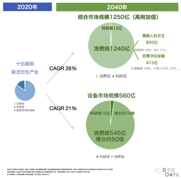 到了2040年,我国脑机接口纯设备市场规模预计会达到560亿人民币,年均复合增长率在21%。