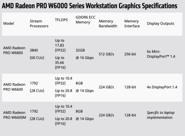 Radeon PRO W6000系列主要特点包括: