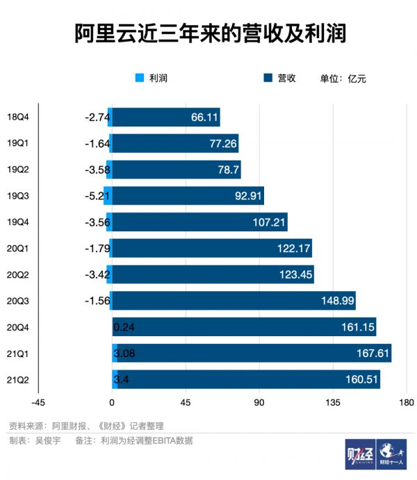 阿里云仍是国内唯一盈利的云厂商,近三个季度经调整后的EBITDA利润分别为0.24亿元、3.08亿元、3.4亿元。华为云也把盈利提上了日程,华为企业业务高管今年5月曾对《财经》记者表示,华为云盈利时间预计在今年或者明年。