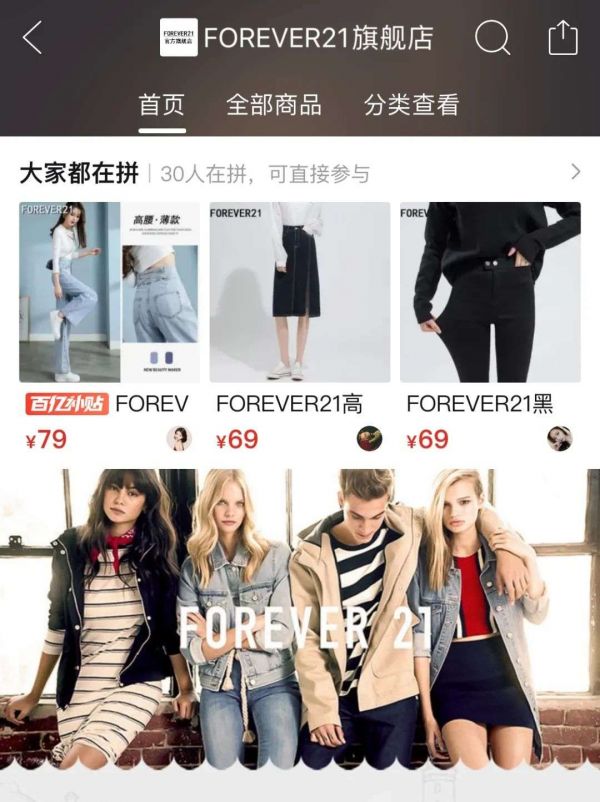 值得注意的是,Forever21此次回归也换了打法,从拼多多、唯品会开始运营。