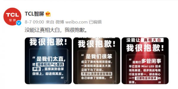 但判决之后,TCL仍对媒体表示“不服”。果然,在“道歉海报”中,TCL并不像在道歉,而是像在给自家产品做宣传。