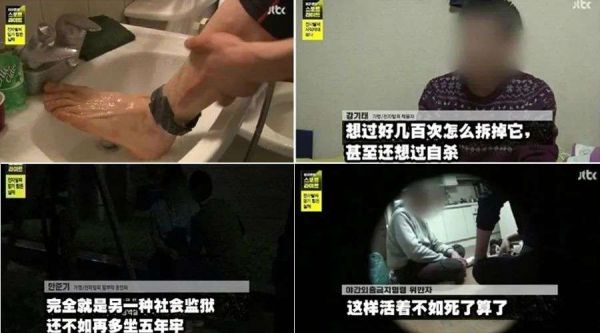 2017年,韩国一档法制节目追踪报道了因犯强奸罪而被强行戴上电子脚镣的特殊人群。在采访过程中,有的佩戴者表示“戴着这个让我很痛苦,我又不是畜生”;也有的佩戴者认为“这不是给我们机会重新做人,只会打击我们”;甚至有佩戴者因此有了轻生的想法。节目播出后,非但没有引发公众同情,反而引起公愤。同时,也有网友表示:中国何时引进?