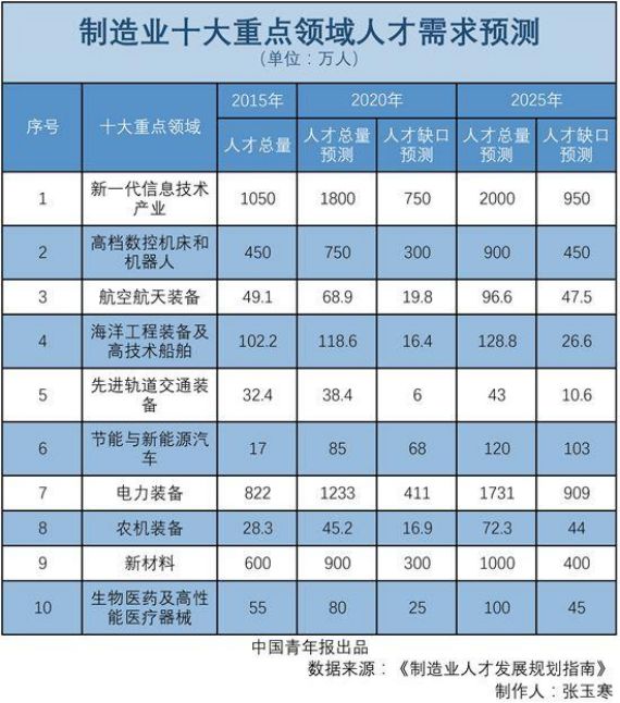 到2025年,制造业十大重点领域人才缺口将近3000万,在关键技术领域仍然存在着许多“卡脖子”的问题,高端研究、科技成果转化、转化成果行业应用、生产服务一线的技术性人才严重缺乏。