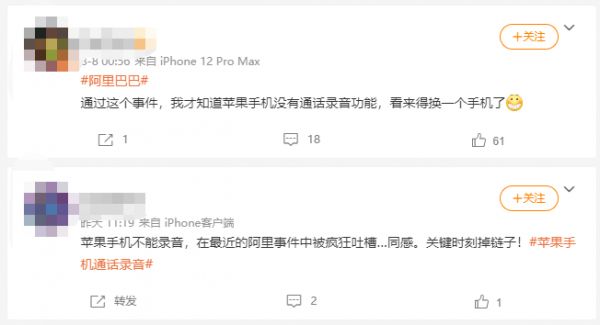 “阿里员工遭性侵”事件中,因为不具备通话录音功能,iPhone“意外”卷入舆论,遭到了各路网友的吐槽: