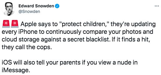 不管用意有多好,苹果都在通过这种方式向全世界输出大规模监控。如果他们今天可以扫描儿童色情内容,那么明天就可以扫描任何东西。他们毫无征兆地将价值1万亿美元的设备变成了监控设施。