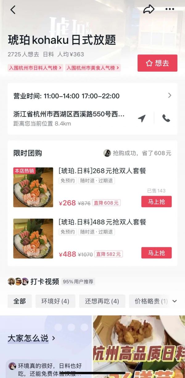 从这个思路上看,抖音是通过外卖团购等,在业务端补齐了内容转化的问题,压力或许还未抛到饿了么美团的身上,反而是同样以内容为核心的小红书可能要思量一下。