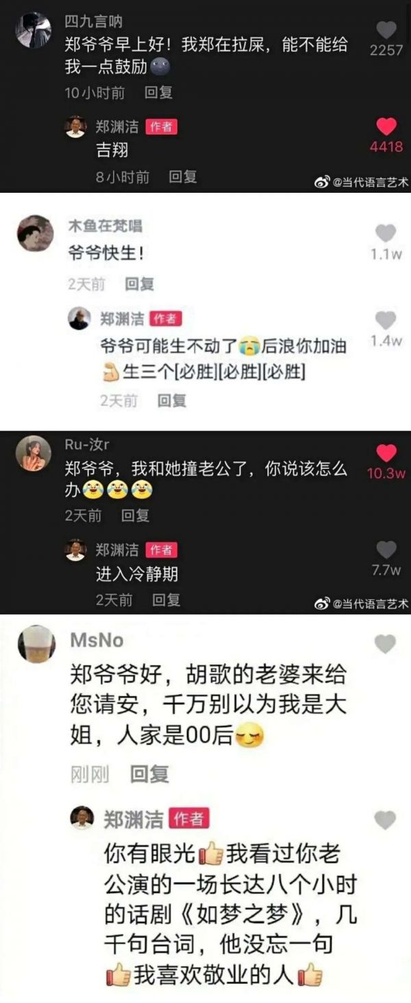 在互联还没有普及的时代,在陌生人之间还是用信沟通的年代,郑渊洁曾在北京买了10套房,用来存放各地读者寄来的信。到了新媒体时代了,“童话大王”还是这么宠粉。粉丝在他评论区底下的留言,郑渊洁都会回复。