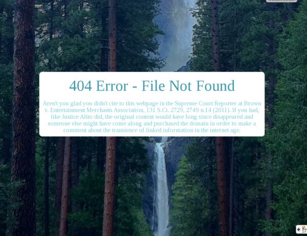 2010年,塞缪尔·阿利托大法官在最高法院审理的一个案件中写了一份同意意见,他的意见书链接到一个网站,作为解释其理由的一部分。意见书发布后不久,任何人通过这个链接都看不到内容。相反,他们会发现如下图的信息。“如果你像阿利托法官那样引用了这个网页,原始内容早就消失了。”