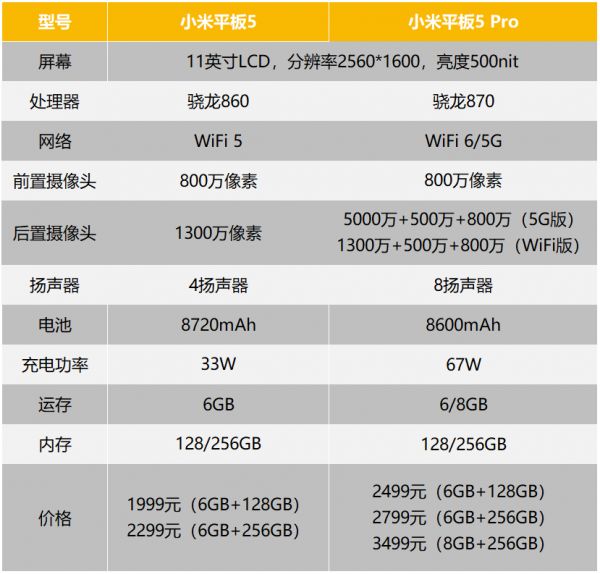 就在8月10日晚,小米推出号称对标iPad Pro的小米平板5和小米平板5 Pro,具体参数价格如下:
