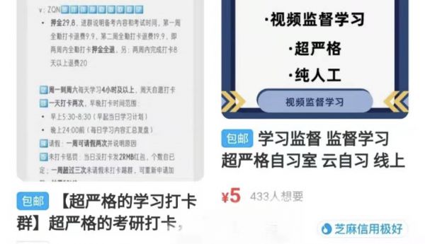 而目前,恰恰是职场人士考证热、“充电”热的时期。因此,在主流电商平台上才会有如此多的商家,推出了看似无厘头的学习监督业务,以顺应“考证达人”需求,“反正我暂时没工作,闲着也是无聊,权当挣点零钱了。”