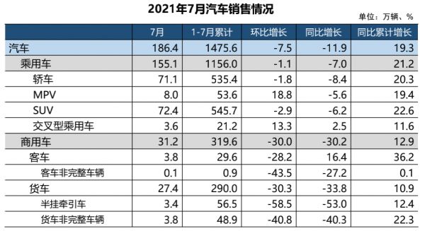 中汽协数据显示,今年7月,中国乘用车累计销量为155.1万辆,环比下滑1.1%,同比下滑7%;商用车累计销量为31.2万辆,环比下滑30.1%,同比下滑30.2%。尽管商用车和乘用车都已连续三个月出现市场下滑,但下滑的原因却不尽相同。
