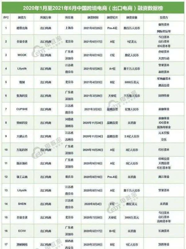 2021年部分融资跨境电商企业一览 图源/官网