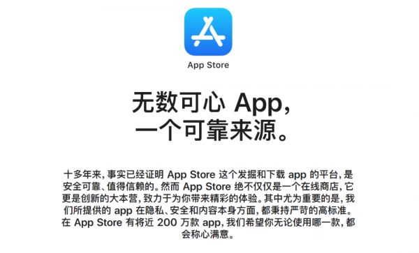 关于苹果App Store,其官网是这样描述的:“十多年来,事实已经证明App Store这个发掘和下载APP的平台,是安全可靠、值得信赖的。”