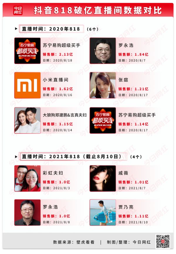 对比去年818,抖音今年的表现似乎更好,破亿直播间中也出现了许多新的面孔。