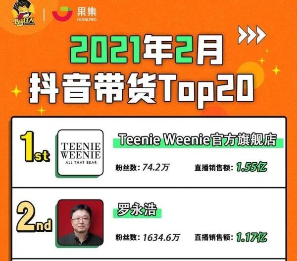 (除了小米直播间以外,还有许多品牌自播直播间表现亮眼,如Teenie Weenie官方旗舰店,今年2月总带货1.55亿,在抖音站内排名第一。)