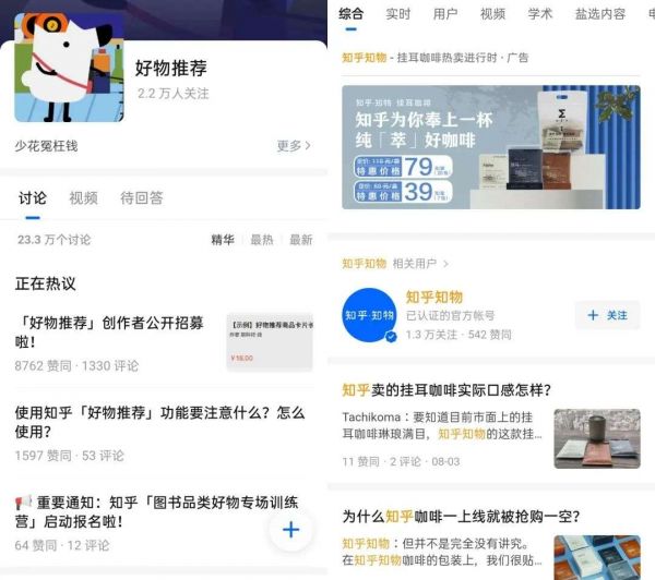 据猎云网报道,知乎在新品上市前,邀请多位咖啡领域答主试喝,并在平台上发起众测活动。用户在试喝后,还需要在平台选定的“有什么好喝不贵的咖啡”“有哪些挂耳咖啡值得推荐”“咖啡上瘾是什么感觉”等问题下发布体验报告,并在内容中插入指定的好物推荐卡片。