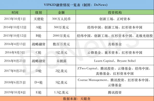 而彼时的VIPKID,相继斩获了来自创新工场、经纬中国、红杉中国、真格基金等知名机构的融资。即便是2015年资本进入“寒冬”,在线教育被泼冷水,多个教育项目出现融资受阻情况下,VIPKID仍拿下了2500万美元的A、B轮融资。