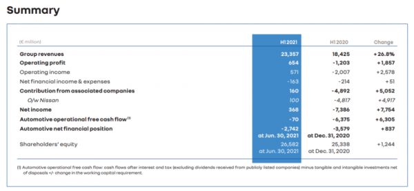 得益于 汽车销量增长,集团2021年上半年营收同比上升26.8%至233.57亿欧元;营业利润 6.54亿美元,而上一年同期亏损12.03亿欧元; 净利润 达3.68亿欧元,上一年受疫情影响亏损73.86亿欧元。期内,营业利润率也从去年同期的-6.5%升至2.8%。