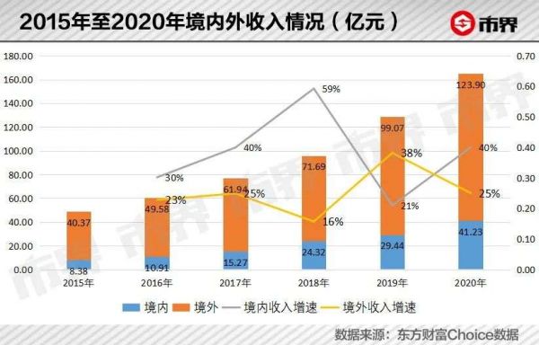 2020年,药明康德营业规模高达165亿元,较2014年上涨近3倍,同期净利润30亿元。其中,来自于境内收入增速高于境外收入,境内收入的占比已经提高至25%。
