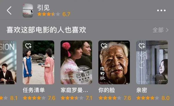 协同过滤算法的优势是不需要关于内容本身的任何参数,也就是说,内容是什么不重要,谁喜欢它才重要。因此,许多平台的相似推荐会采用“喜欢这部电影的人也喜欢”这种表述。同样,当韩国导演洪尚秀的电影《引见》的相似推荐中,同时出现蔡明亮、滨口龙介和赫尔佐格的作品时,我们也就不必惊讶,因为在协同过滤的逻辑下,正是影迷的选择造就了不同时期、不同国别、不同风格的导演之间强有力的连结。