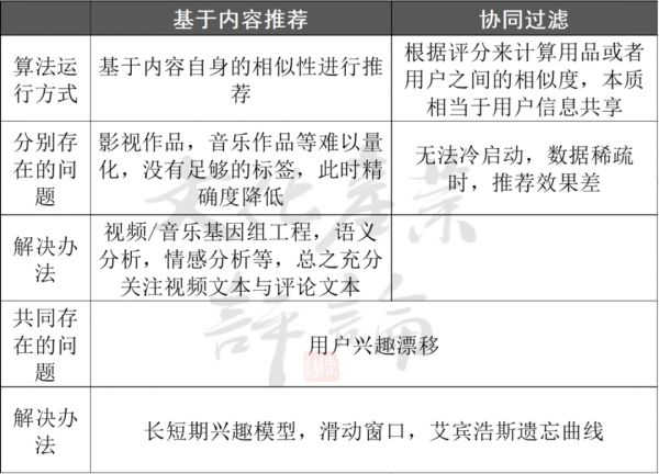 总结起来,现在各影视平台所用的纷繁复杂的推荐算法不外乎两条根本逻辑:一个是协同过滤算法,一个是基于内容的推荐算法。