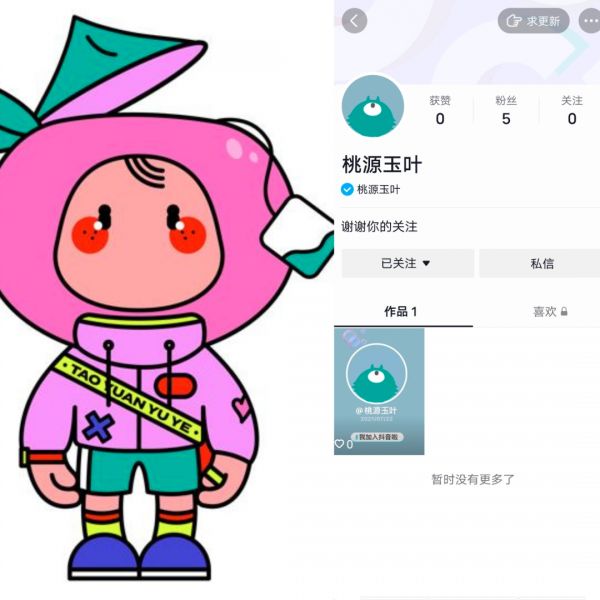 注:桃源玉叶的IP形象和桃源玉叶的认证抖音号。