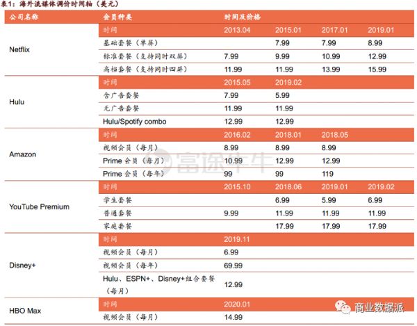 参照Netflix的会员价格体系,Netflix自2014年开始对会员费提价,以此带来的ARPU值自2014年的8.14美元/月增长至2019 年的12.89美元/月,提升幅度高达58.3%。