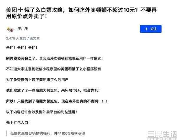 不知大家是否发现,无论你在微博、知乎、贴吧、小红书,还是在抖音和快手,都免不了会遇到例如“外卖漏洞”、“1元点外卖”、“300块钱吃一个月外卖”、“66元外卖红包每天领”等类似风格的内容。在这些调性完全不同的平台上,总有“好心人”告诉如何“白嫖”美团或饿了么。