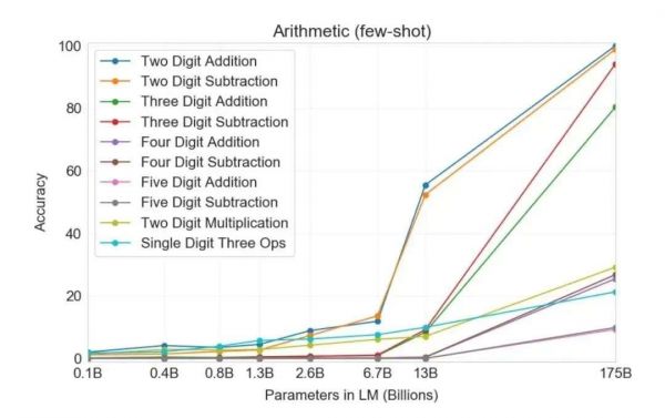 不过在NLP领域OpenAI迎来了华丽的转身,虽然本次Codex论文的正式版还没发出,但是本质上讲Codex只是个编码专用版的GPT-3,OpenAI在GPT-3在论文开头就直接指出,通过对大量文本进行预训练,并且针对特定任务进行微调,模型的性能可以在许多NLP任务以及基准测试中获得显著提升。如图所示,X轴代码模型的参数数量级而纵轴代表准确率,可以看到,模型规模越大,准确率也会随之升高,尤其是在参数规模达到13亿以后,准确率提升的速度还会更快。简单讲也就是说GPT-3的决胜之道在于,其模型的训练集特别大,参数茫茫多。