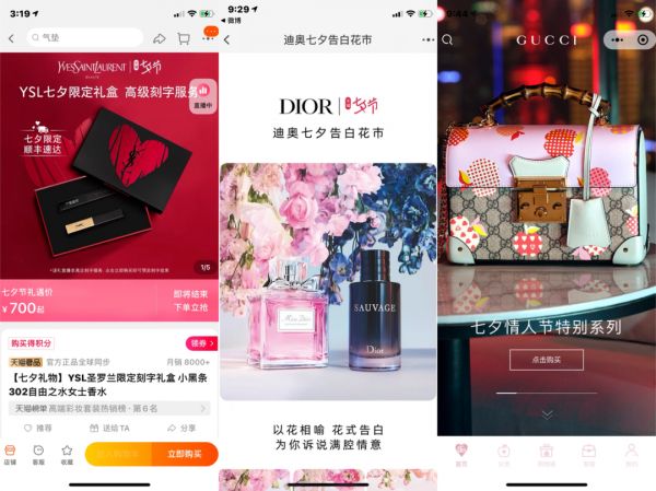 但今年明显不同。大多奢侈品牌并没有任何“剑走偏锋”的创意,也没有太多试图跨过文化差异鸿沟来讲的东方爱情故事,而是将营销主题定位得更加言简意赅——直接将品牌标榜为“七夕佳节的首选”、礼献挚爱”等文案,号召用户买买买。