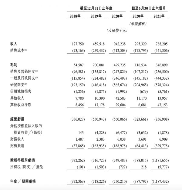 招股书显示,其先知平台及应用产品产生的收入在2018年、2019年及2020年分别为523万元、2.54亿元、6.19亿元;2021年上半年为3.76亿元,较2020年上半年同比增长91.5%。此外,“应用开发及其他服务”收入也占据一定的比重,该业务是指帮助客户在先知平台上开发定制化的人工智能应用。